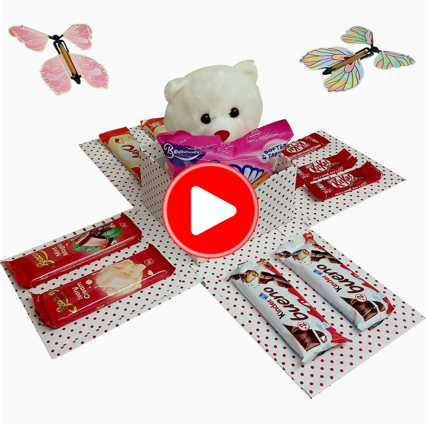 Ruby Reveal | Butterfly, Snack & Teddy Explosion Box |Gift Hamper