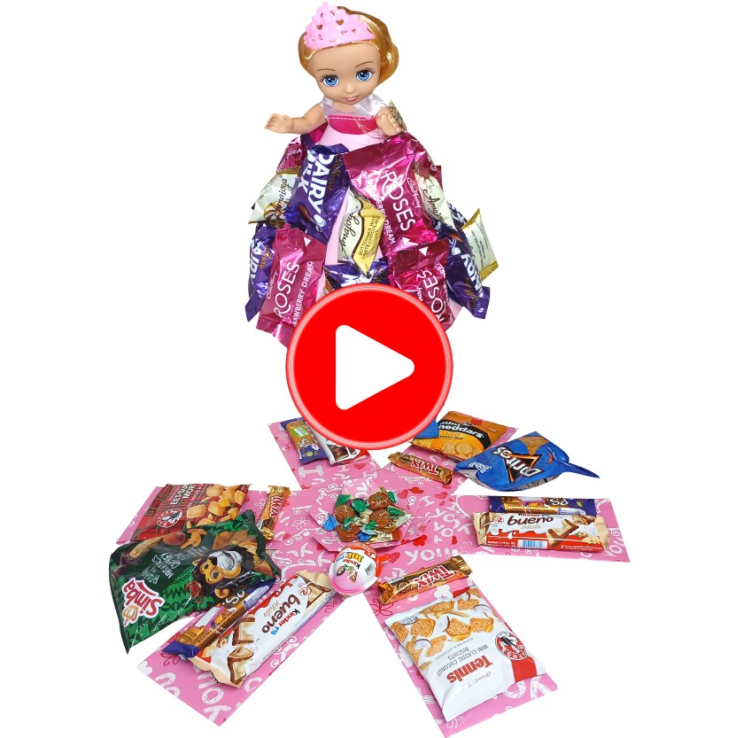 A beautiful Princess Doll stands center-stage, adorned in a glamorous, full dress made entirely of her favorite chocolates and sweets! Surrounded by a generous supply of popular snacks and treats, this layer is the perfect "Wow" moment.